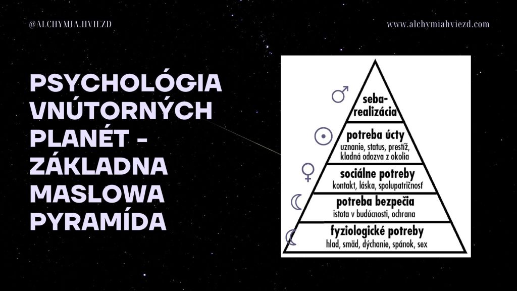 To, že astrológia je modernou psychológiou je niečo, čo verím že pomaly ale isto spolu odhaľujeme. Maslowova pyramída, ako koncept z psychológie je toho dôkazom. Hovorí o tom, ako naše ľudské potreby a potreby Vnútorných planét spolu úzko súvisia — obe totiž popisujú rôzne úrovne ľudskej motivácie a vývoja vedomia. Maslow ju vyjadril cez psychologické potreby, zatiaľ čo astrológia cez symbolický jazyk planét.