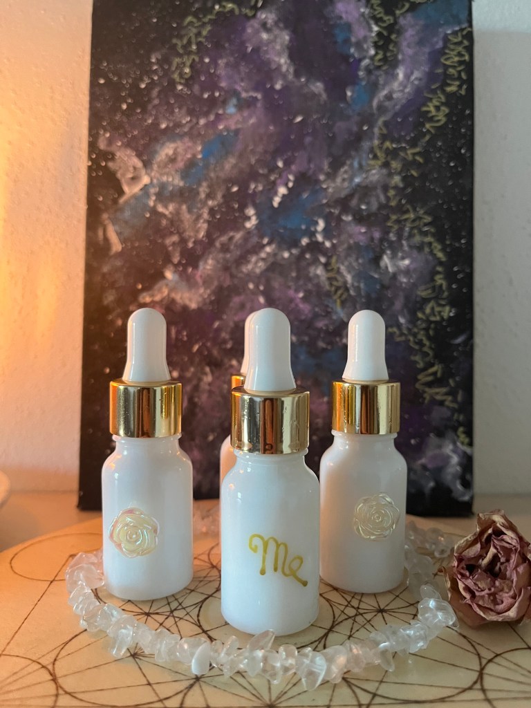 - Astrologické esencie – esencie naladené na vibrácie planét a znamení, ktoré podporia tvoje vnútorné procesy a zosúladia ťa s kozmickými rytmami. Podporujú vnútornú harmóniu, otvárajú dvere k hlbšiemu prežívaniu a pomáhajú ladiť sa na rytmy, ktoré vaša duša potrebuje.